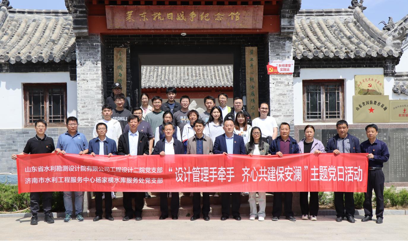 4月17日,山东水设工程设计二院党支部联合济南市水利工程服务中心杨家横水库服务处党支部在钢城区开展“设计管理手牵手,齐心共建保安澜”主题党日活动。济南市水利工程服务中心副主任田晓东、山东水设党委副书记王洪涛、杨家横水库服务处支部书记李忠、工程设计二院党支部书记杨国瑞以及双方党支部党员代表参加了此次活动。