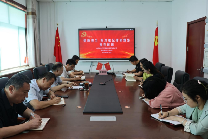 会议强调,公司作为高新技术服务企业,主要承担水利工程建设监理、项目代建、项目咨询服务等工作,协调服务于水利工程各参建方。要根据工作要求和岗位职责,通过正面典型和反面案例开展廉洁教育,及时进行廉洁提醒,以铁的工作作风加上铁的纪律,才能永葆“铁军”本色。也只有业务精、纪律强,才能站住脚、扎下根,要把学习成果转化为推动业务工作的强大动力,以铁的纪律为公司高质量发展保驾护航。