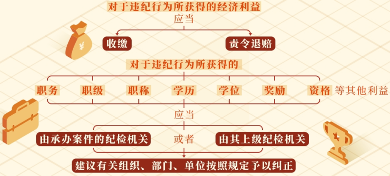 《中国共产党纪律处分条例》对于违纪行为所获利益如何处理作出了规定。主要分为两种情况——