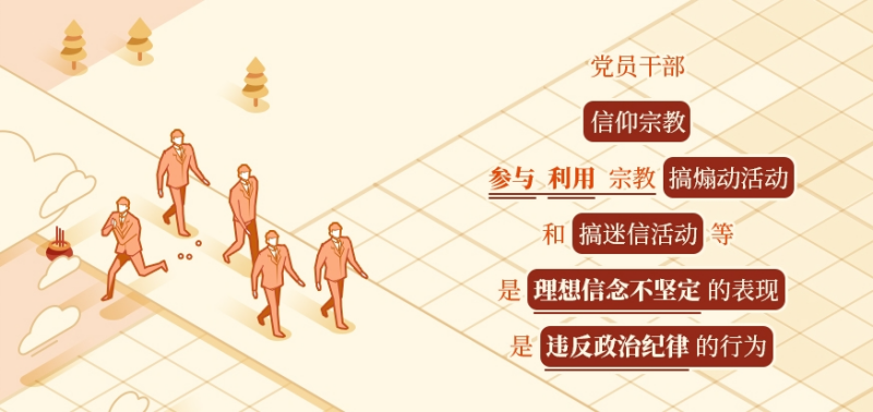 党员干部组织或参加迷信活动,更是理想信念缺失的体现。梳理近年来落马的党员领导干部,仍有人“不信马列信鬼神”——有的长期在家烧香拜佛,有的给自己祖坟、办公室调风水,有的指使行贿人给“大师”捐款。党员干部搞迷信活动绝不是一件小事,会侵蚀共产党人的政治灵魂,也常常与腐败行为相伴相生,必须以严格的纪律予以规制。