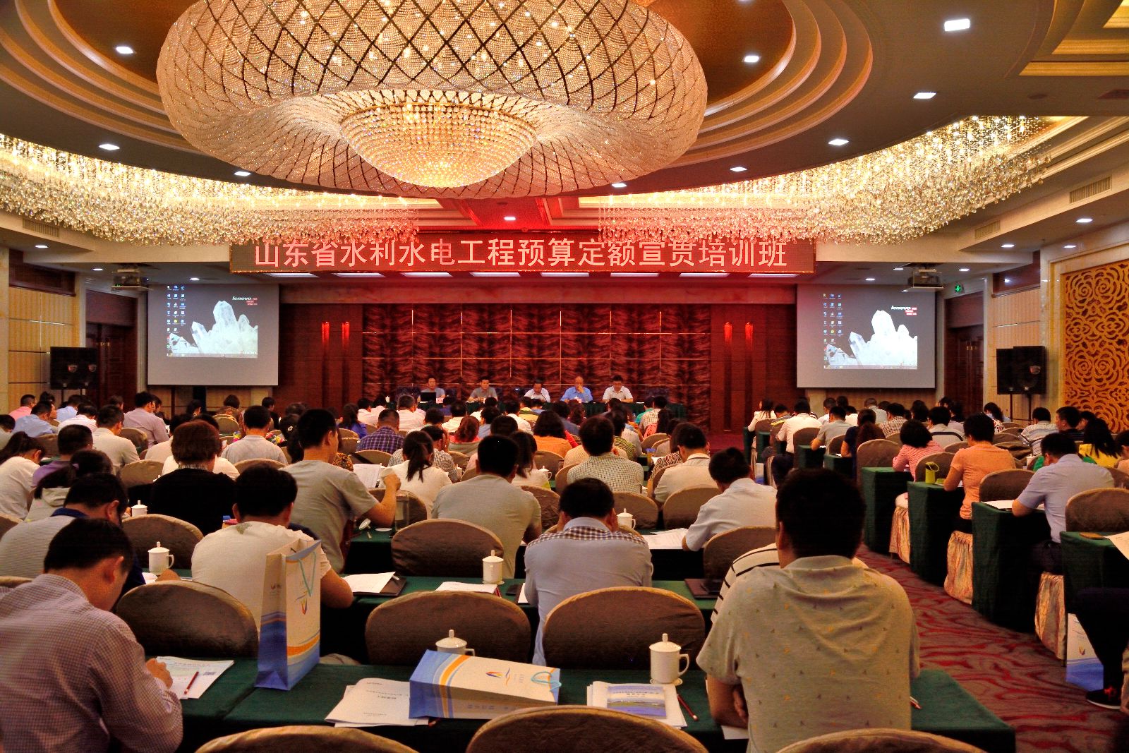 水利部水利水电规划设计总院施工概预算专家胡玉强主任解读了水利部《水利工程设计概(估)算编制规定(工程部分)》。山东省水利勘测设计院副总工程师、技术审核中心主任王永强同志讲解了《山东省水利水电工程预算定额及设计概(估)算编制办法》修编情况,并对《山东省水利水电工程预算定额及设计概(估)算编制办法》进行了解读。青岛英特软件有限公司郑冀生总监介绍了《山东省水利水电工程概预算编制软件》开发和应用情况。