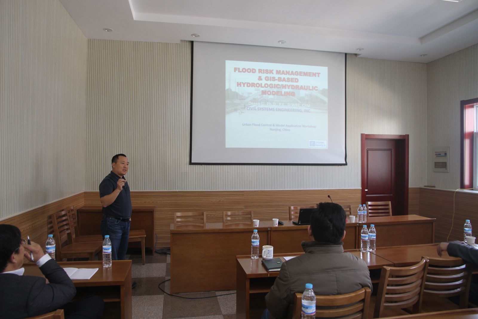 李德忍博士是我国水利部特邀防洪规划专家,毕业后一直在美国从事水文水资源、城市防洪排水、水文水力学计算机模型模拟开发研究等工作,在洪水风险图编制和管理等方面有较深造诣。李博士介绍了美国洪水风险管理的基本情况,对美国在洪水风险管理中的基本理念和标准等进行了讲解,对美国长久以来洪水风险管理的做法和经验做了详细介绍,同时阐述了美国当前洪水风险管理的思路、发展进程和未来发展方向。重点讲解了美国对洪水风险图编制的基本要求和方法,介绍和演示了美国在洪水风险图编制和洪水分析计算工作中所使用的主要软件,向与会人员展现了某典型区域洪水演变计算机二维模拟情景。
