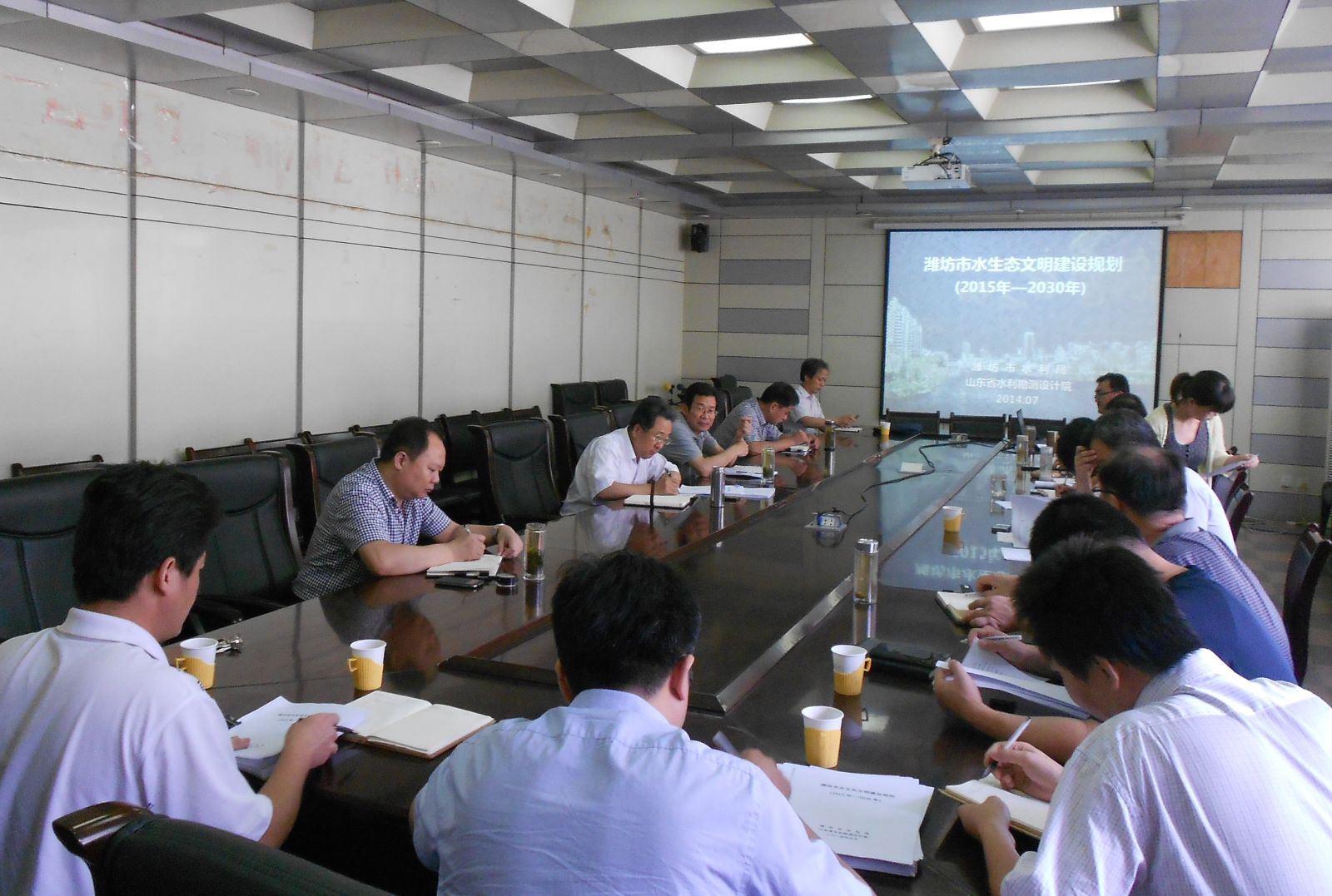 水生态文明作为一种崭新的文明形态,其概念、内涵、特征尚处于讨论探索阶段。水生态文明建设规划亦不同于水网规划、水利发展规划等传统水利规划,目前国内外少有文献报道,更无同类规划可以借鉴。为了做好《规划》编制工作,我院项目组积极与潍坊市水利局沟通,完成初稿后于7月10日赴潍坊进行了初次征求意见,并按业主要求进行了修改完善。