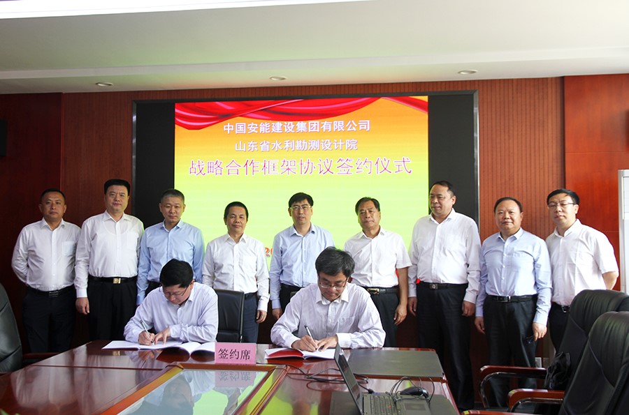 近日,公司与中国安能建设集团有限公司(以下简称“安能集团”)战略协议在济南签署。公司党委委员、副总经理李贵清与安能集团党委常委、副总经理周庆丰分别代表双方在协议上签字。公司党委书记、董事长刘绍清出席签约仪式并讲话。