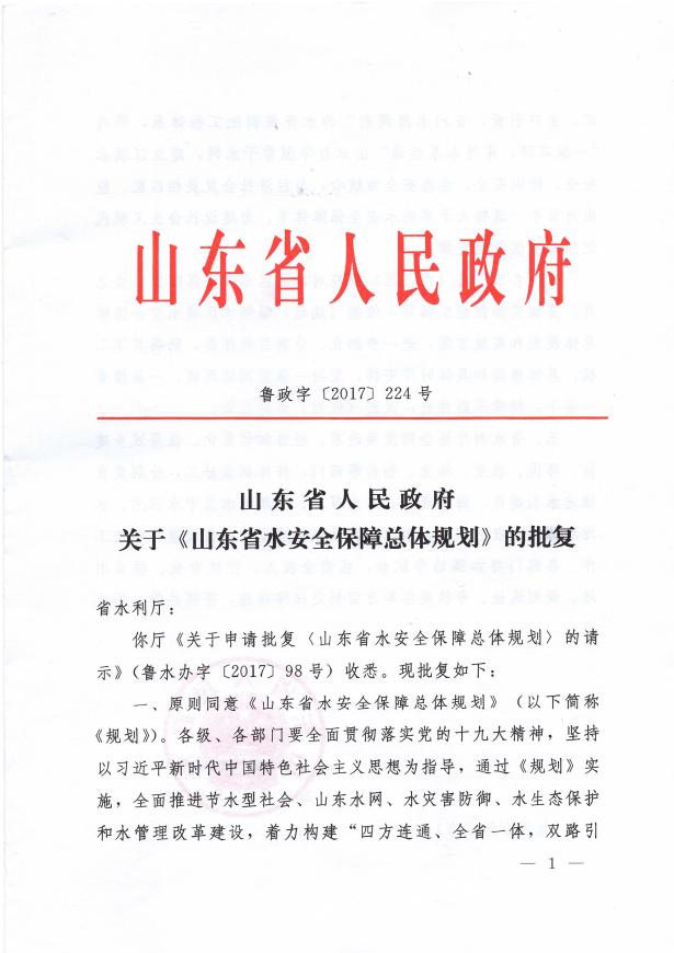 “山东省水安全保障总体规划”立足山东省情、水情,突出问题导向、目标导向,建立以供水安全、防洪安全、生态安全为核心,与经济社会发展相匹配、具有山东特色的水安全保障体系,对保障山东经济社会健康持续发展具有重要意义。本规划是国内首个经省委、省政府审议批复实施的省级水安全保障总体规划,具有开创性;规划深入贯彻新发展理念,落实节水优先、空间均衡、系统治理、两手发力治水思路,提出了“五策并举、五水并治、五水并用”的总体布局,构建“四方连通、全省一体、双路引江、多口引黄、省内水源调剂”的水资源调配工程体系,形成“一纵双环、库河水连通”山东百字型骨干水网,为目前开展的南水北调后续工程规划、国家水网规划等奠定了良好的基础。该项目荣获全国优秀水利水电工程勘测设计铜质奖。