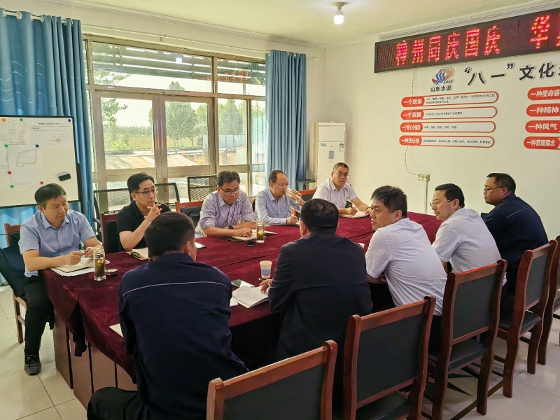 10月5日下午,李贵清一行从利民水库项目部赶到位于章丘圣井的试验公司,听取了公司负责人的工作汇报和园区现状的情况介绍,查看了职工办公区、试验室、生活区的安全生产情况以及产业园土地的使用租赁现状,并就下一步园区存量土地的规划使用进行了研讨。