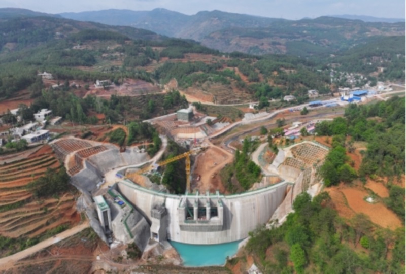 本工程2021年3月16日开工,2021年12月15日截流,2022年1月27日开始大坝混凝土浇筑,2022年5月至9月大坝度汛,2023年4月底大坝封顶,比计划工期提前2个月。工程开工建设以来,我公司与各参建单位通力协作,在保证质量和安全的前提下,围绕建设计划节点目标合理优化设计,采用施工新技术,改进施工组织措施,使工序衔接更加紧密,高效高质推进工程建设。同时,我公司认真履行勘察设计职责,及时做好供图、设计交底、设计变更等服务工作,得到各参建单位一致好评,赢得了业主的肯定。