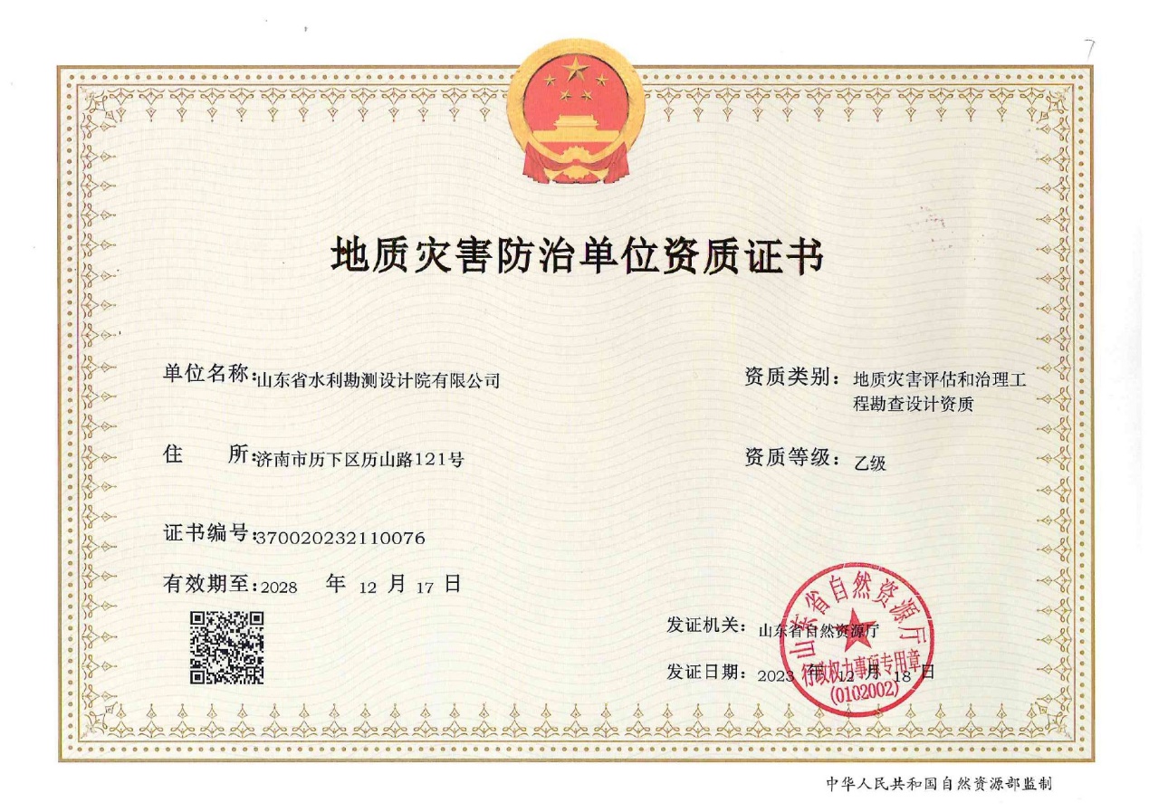 近日,济南市自然资源和规划局对地质灾害防治单位资质申请审查结果进行了公告,2024幸运168飞行艇开奖历史记录成功取得地质灾害评估和治理工程勘查设计乙级资质。这是《地质灾害防治单位资质管理办法》新标准颁布后,济南市首次公告审批通过单位名单。至此,公司的地质灾害危险性评估乙级资质升级为地质灾害评估和治理工程勘查设计乙级,可以承担的业务由原来的地质灾害评估扩大为地质灾害评估和灾害治理工程勘查设计。
