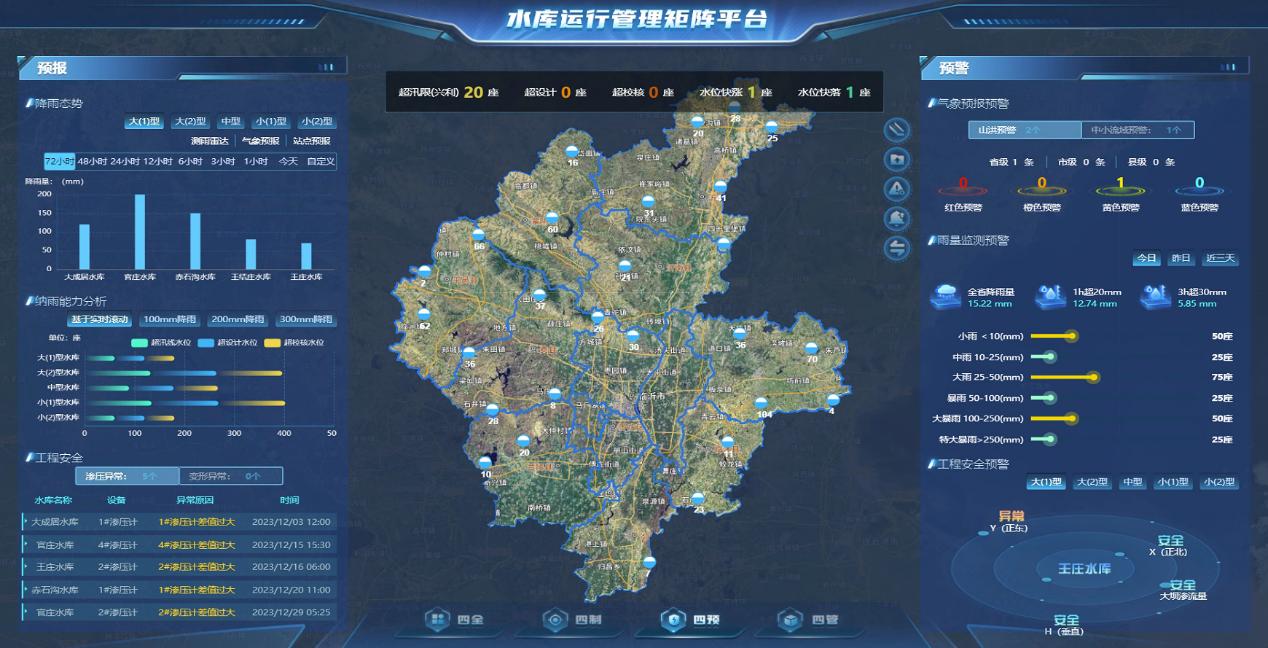 2023年水利部印发《水利部关于加快构建现代化水库运行管理矩阵的指导意见》。公司及时组建专业团队,组织对文件的学习,派员向该领域专家请教,实地调研水库地方管理单位管理需求,以“水库数字化管理系统”为基础,研发了“水库运行管理矩阵平台”。平台以水库实际业务需求为导向,利用数字孪生、智能识别、大数据等技术,集合水库数据资源和水利专业模型,建立互联互通共享机制,全面实现了水库“四全”“四制(治)”“四预”“四管”的管理矩阵功能。