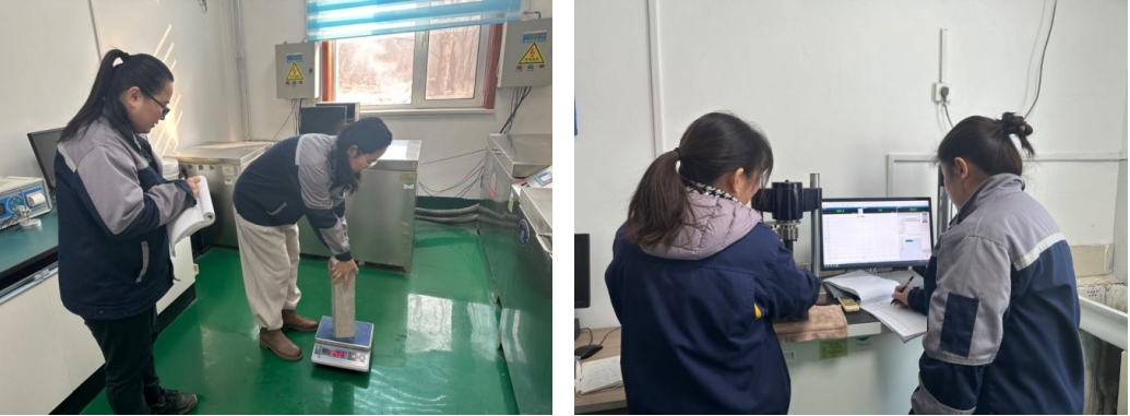 冒严寒,坚守岗位乐奉献。年初适逢严寒大雪,现场检测人员踏着皑皑白雪、冒着刺骨的寒风,按照工程施工节点进行质量控制,原材料取样、现场检测都一丝不苟,严把质量关。室内试验规范精细,力求数据准确可靠。每个职工都牢记使命担当,立足岗位做好本职工作,助力山东水利高质量发展。