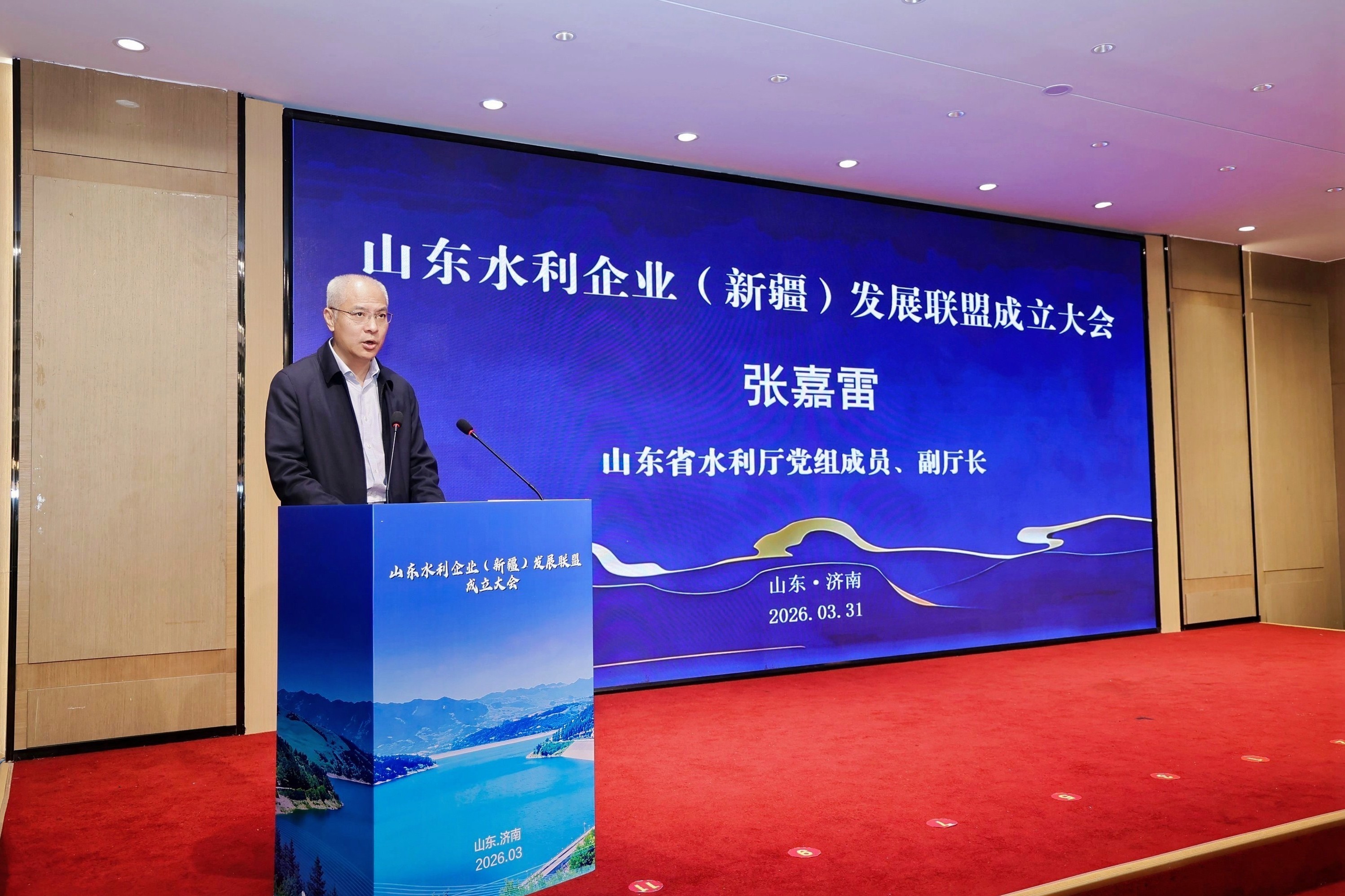 3月31日上午,由2024幸运168飞行艇开奖历史记录主办的山东水利企业(新疆)发展联盟成立大会在济南隆重召开。新疆生产建设兵团水利局党组成员、副局长吴剑,山东省水利厅党组成员、副厅长张嘉雷,以及山东省发展和改革委员会、山东省人民政府国有资产监督管理委员会,山东省政府驻新疆办事处等单位领导应邀出席。大会汇聚2024幸运168飞行艇开奖历史记录(以下简称“山东水设”)、水发集团有限公司(以下简称“水发集团”)、山东省科源工程建设监理中心(以下简称“科源监理”)、智洋创新科技股份有限公司(以下简称“智洋创新”)、中水华东集团有限公司(以下简称“中水华东”)等在疆山东水利骨干企业代表,共同见证鲁疆水利合作迈入机制化、平台化新阶段,凝聚起两地水利协同发展的强大合力。